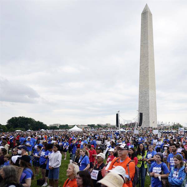 Aunque los organizadores habían dicho que esperaban decenas de miles de participantes, la concentración de Washington apenas reunió a unos pocos miles, en un día en que el cielo estaba gris en la capital estadounidense e incluso lloviznó.