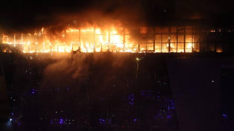 Una periodista de la AFP vio el edificio de la sala de conciertos en llamas y una humareda negra que se desprendía del techo.