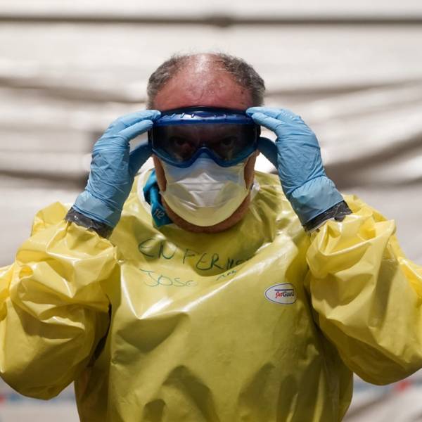 En la capital española, el ejército empezó a trasladar por la noche a los primeros 200 pacientes de un hospital de campaña habilitado en el enorme pabellón de congresos IFEMA, donde se habían instalado filas de decenas de camas con sábanas blancas.