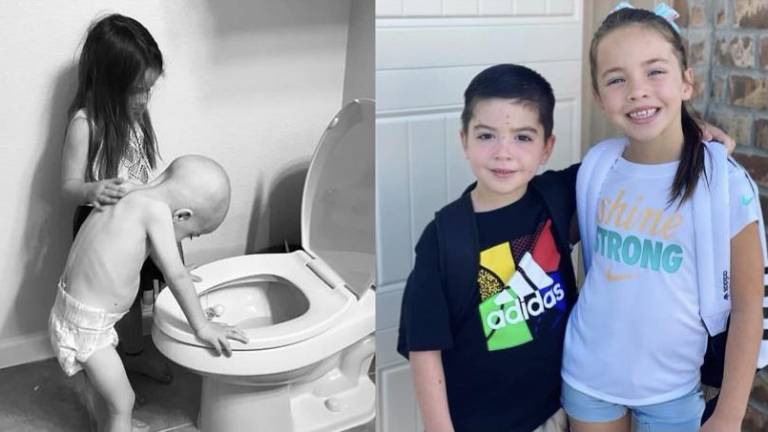 La foto en blanco y negro de un niño con cáncer siendo apoyado por su hermana en un baño, se viralizó en 2019. La imagen, publiciada por la madre de los niños, demuestra cómo las familias atraviesan momentos duros en unidad. Se trata de los pequeños Audrey (quien entonces tenía cinco años) y Beckett (de cuatro años), quien ahora se encuentra libre de cáncer.