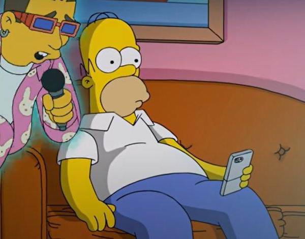 En el video en mención, se muestra a Bad Bunny cuando toma el teléfono de Homero, lo arroja al suelo y termina pisándolo.