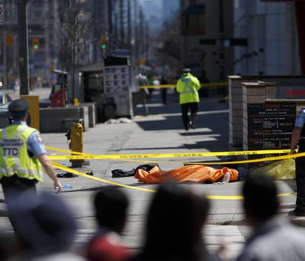 Al menos nueve personas murieron y 16 quedaron heridas el lunes en Toronto, luego de que una camioneta se lanzara a toda velocidad sobre una acera atropellando a varios peatones, informó la policía.