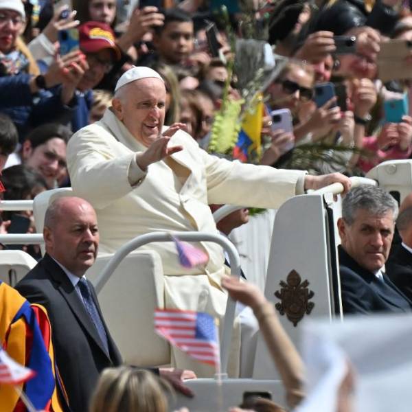 Francisco, aún convaleciente, reapareció en la plaza de San Pedro ante unos 30.000 fieles -según cifras de la Santa Sede- después de pasar tres días ingresado en el hospital Gemelli de Roma a causa de una bronquitis que le sobrevino el pasado miércoles tras la audiencia general.