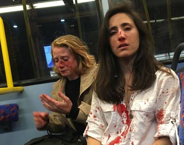 "No me acuerdo de si perdí o no la conciencia. De repente, el autobús había parado, la policía estaba allí y yo sangraba por todas partes", dijo la afectada, a la que además de fracturar la nariz, el grupo de vándalos le robó un teléfono y el bolso antes de huir.