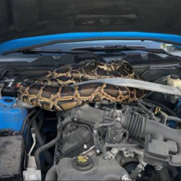 Gerard Doffay, que ayudó a sacar al reptil del carro, dijo al canal que "era una serpiente grande" como de "unos 20 pies (6 metros)", pero el comunicado de la FWC indicó después que la pitón medía 10 pies (3 metros), exactamente la mitad.
