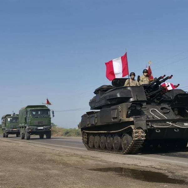 A lo largo de la ribera izquierda del río Zarumilla, que marca la frontera entre Perú y Ecuador, se ubicaron más de 50 vehículos del Ejército peruano entre tanques, carros de combate, vehículos blindados y patrulleros, así como más de 1.200 militares.