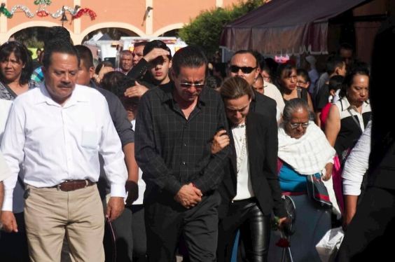 Las fotos del funeral muestran a Hassen Morales desconsolada tomada del brazo de quien hasta ese momento era su suegro.