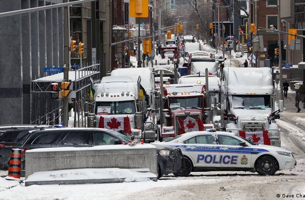 El movimiento, llamado "Convoy de la libertad", fue convocado en rechazo a la decisión del gobierno de obligar a vacunarse contra el covid-19 a los camioneros que cruzan la frontera entre Canadá y Estados Unidos.