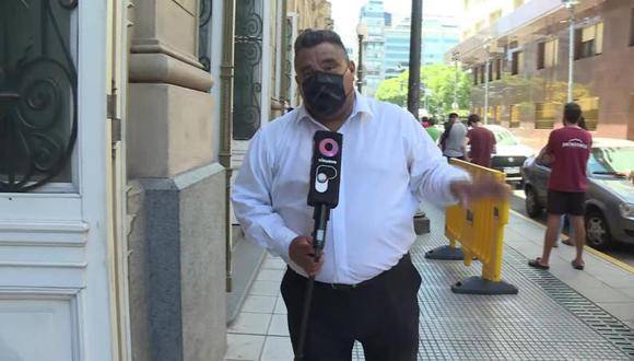 El hombre reportaba desde los exteriores del centro de Testeo del Teatro Colón. Cuando estaba a punto de cerrar la transmisión se le escuchó disculparse en varias ocasiones antes de caer al piso.