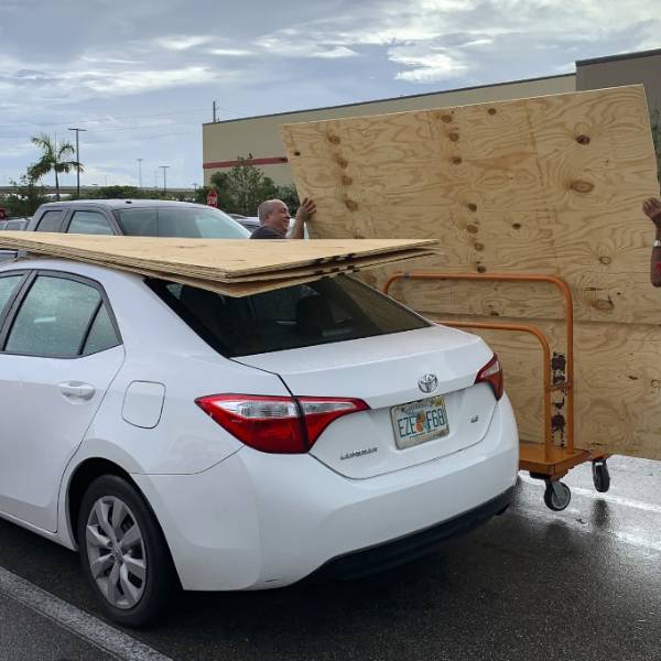 La tienda de suministros de construcción Home Depot se estaba quedando sin tablones de madera, que son utilizados por los residentes para tapiar las ventanas ante la llegada de un huracán.