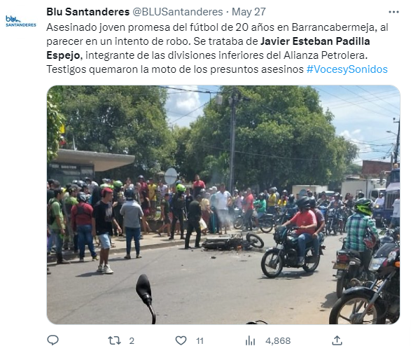 Inmediatamente Padilla, que fue jugador de Alianza Petrolera y de divisiones menores, fue trasladado al Centro de Salud Danubio pero murió por la gravedad de las heridas.