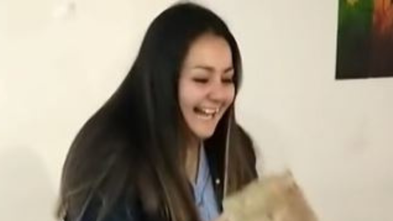 Tan pronto abrió el regalo, la mirada desconcertada de la cumpleañera se enfocó de golpe en la usuaria y en su rostro se esbozó una sonrisa. Sosteniendo el ladrillo en la mano, se reía mientras recordaba que nunca detalló cuánto material quería.
