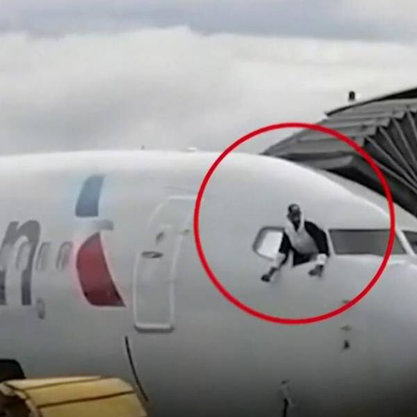 Videos y fotos difundidas en redes sociales muestran al hombre cuando intentaba escapar y en otra de las imágenes se evidencia el daño de las palancas de la potencia, específicamente la del motor 1.