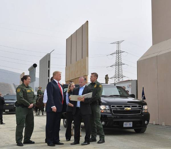 Trump inspeccionó ocho modelos a escala real -de nueve metros de altura-, hechos de concreto y acero, erigidos uno al lado del otro en Otay Mesa, al sur de San Diego y junto a la frontera con Tijuana, México.
