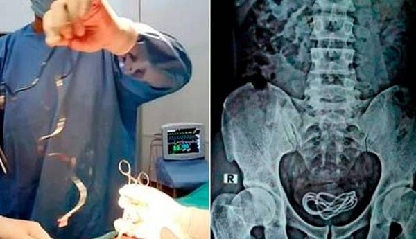 A través de estudios con rayos X, los médicos lograron identificar con precisión, el objeto dentro de la vejiga del paciente, y que fue introducido a través de su uretra desde el pene.