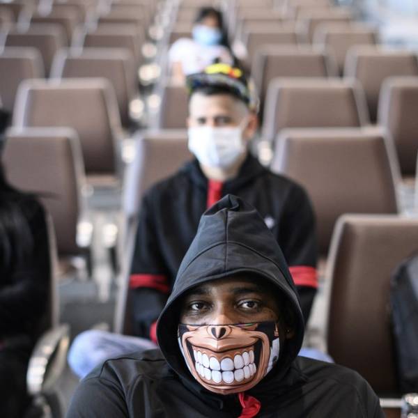 Las azafatas le colocaron una máscara y guantes y le ordenaron quedarse en la parte trasera de la nave.