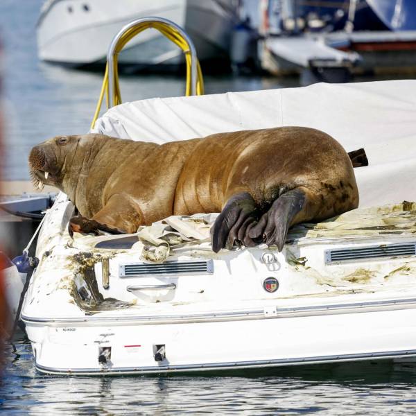 Entre dos grandes siestas -una morsa puede dormir hasta 20 horas al día-, Freya fue filmada cazando un pato, atacando a un cisne o, en la mayoría de los casos, dormitando en embarcaciones que se hunden bajo su peso.