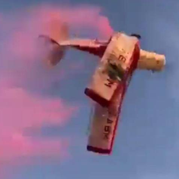 🛩️La aeronave sufrió un desperfecto después de soltar el polvo de color rosa y cayó al suelo.