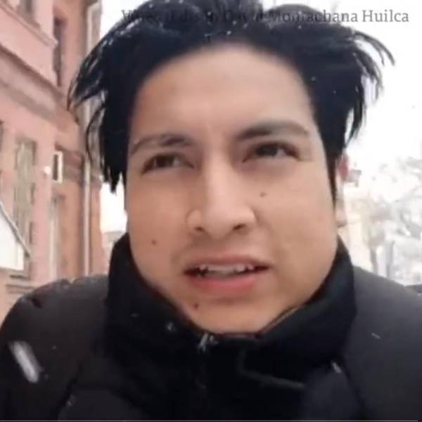 Detonaciones de bombas se escuchaban de fondo, en el instante justo en que el ecuatoriano Édison Montachana contaba lo que pasaba en Ucrania.