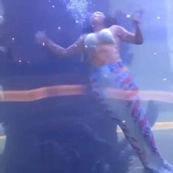 El clip, la afectada aparece sumergida en un acuario, por detrás de un vidrio que la separa de los espectadores, en su mayoría niños. Para saludar a los espectadores, la "sirenita" decidió bucear hacia el fondo, sin llevar consigo ningún equipo de respiración.
