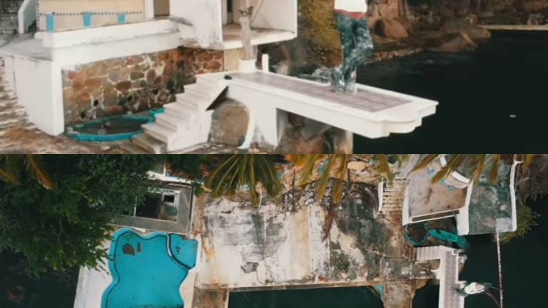 La mansión ubicada en Acapulco se encuentra llena de maleza, con las zonas externas repletas de moho y con pintura carcomida, trozos de paredes destrozados, vidrios rotos, paredes internas caídas entre otros daños generados a lo largo del tiempo.
