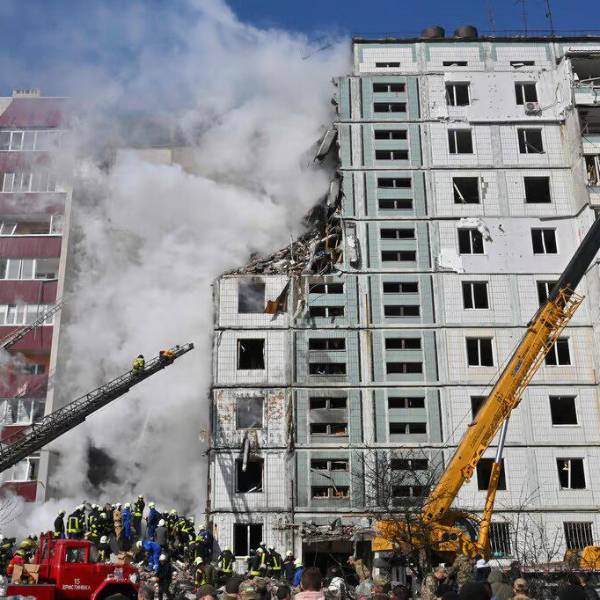 “Nunca pensé que esto nos pudiera pasar, estamos cubiertos de sangre”, expresa entre lágrimas una mujer, residente de un bloque de departamentos de la ciudad ucraniana de Uman, impactado por misiles rusos, mientras graba el interior de su hogar.