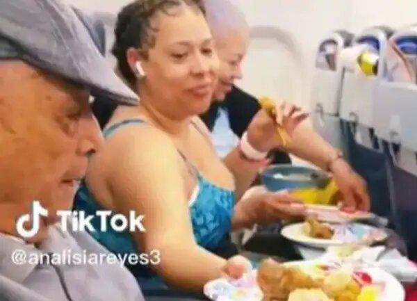La joven, quien colocó el hashtag #dominican bajo el video, subido a finales de marzo, captó el momento en el que sus familiares repartían platos de pollo frito entre ellos mientras que esperaban a que el avión en el que iban a bordo despegue.