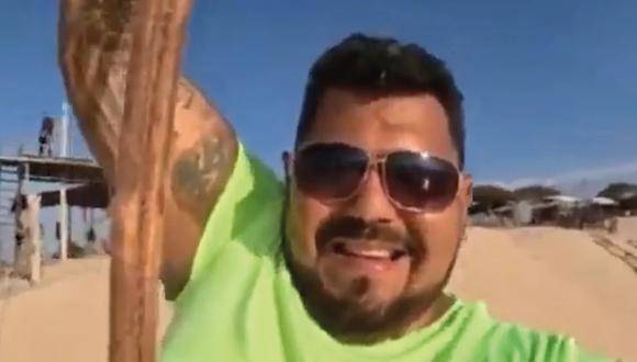En las imágenes se puede ver a Sergio sonriente, mientras realizaba el descenso. Pero de manera repentina, en la mitad del recorrido la tirolesa cedió y el turista cayó violentamente contra la arena.