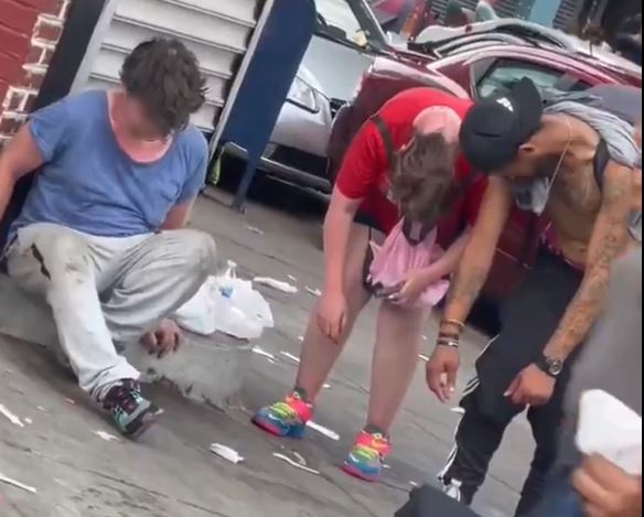 La grabación fue realizada en Filadelfia, ciudad de Pensilvania (EE.UU.) y acumuló millones de visualizaciones en reacciones. En esta se observa a los usuarios del potente opioide quedar aletargados y moverse con la mirada hacia abajo, temblando en medio de una vereda llena de desechos.