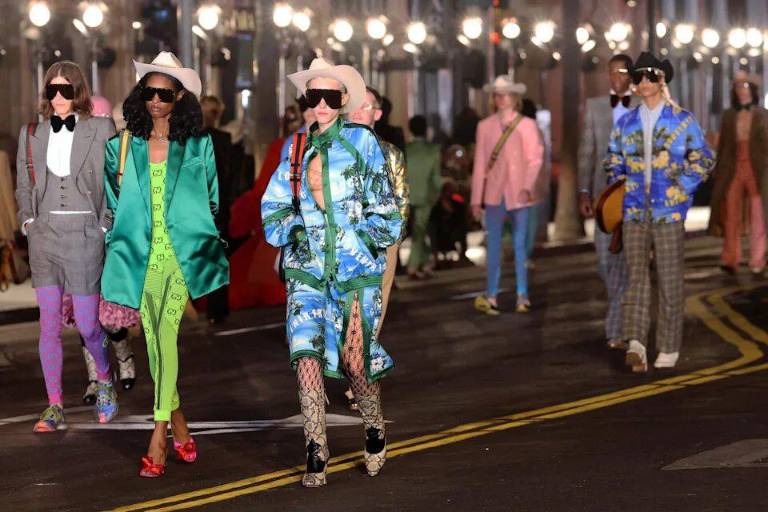 Estrellas como Jared Leto y Jodie Turner-Smith, son invitados habituales a los desfiles de Gucci, que en esta ocasión con la colección Gucci Love Parede, de Alessandro Michele, paralizó el boulevard de Hollywood.
