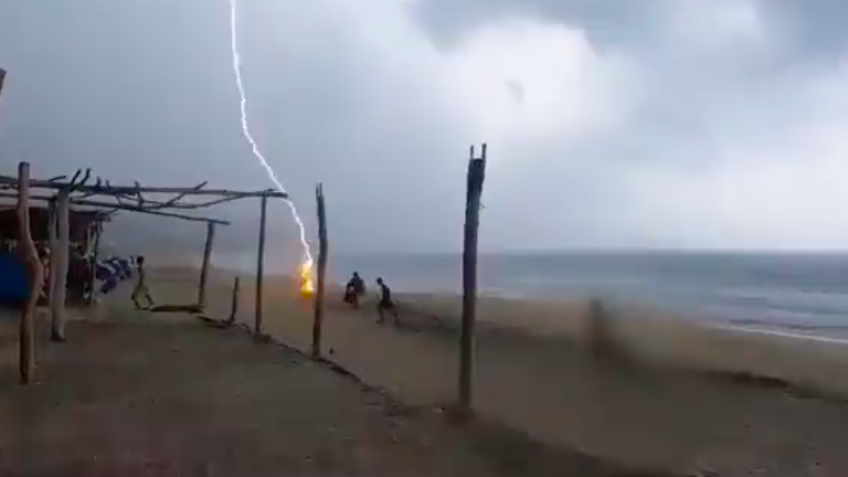 La tragedia ocurrió en el balneario de Maruata, perteneciente al Municipio de Aquila, en el estado de Michoacán. En el clip, que rápidamente se ha vuelto tendencia en redes sociales, se observa que un grupo de personas corre al observar que el cielo está oscuro y hay relámpagos.