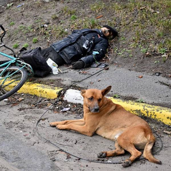 Tras la retirada de las fuerzas rusas, una calle arbolada de la localidad ucraniana de Bucha, en las afueras de Kiev, quedó llena de cuerpos desparramados y vestidos de civil.