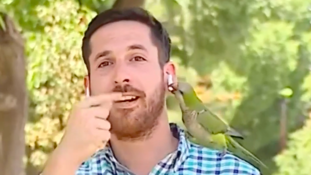 Un insólito robo está dando la vuelta al mundo. Resulta que un periodista chileno realizaba una transmisión en vivo, cuando de pronto un loro se posó en su hombro, robó el auricular de su oreja y se perdió en el cielo con el aparato en el pico.
