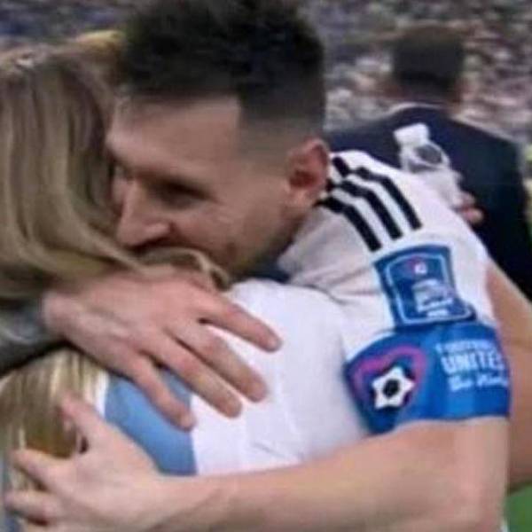 Ese instante, que ha sido viralizado en redes sociales, muestra a Messi darle un abrazo de manera muy sentida y hasta la alza un poco por la emoción.