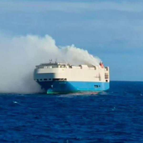 Las autoridades portuguesas monitorean al mercante "Felicity Ace", que transporta vehículos, y arde a la deriva cerca de las islas lusas de Azores, desde el miércoles pasado, tras la evacuación de sus 22 tripulantes.