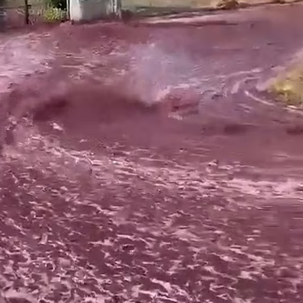 El accidente que dio pie a que se registrara la peculiar escena, que ha dado la vuelta al mundo, sucedió en la destilería Levira, el domingo 10 de septiembre. La cantidad de vino vertido en la vía fue tan grande que las autoridades declararon una alerta ambiental ese día.