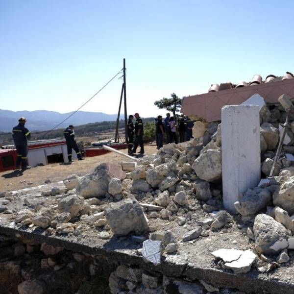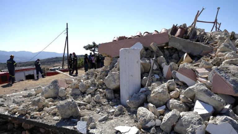 En los altos de Arkalochóri, un obrero de la construcción murió mientras trabajaba en una pequeña iglesia cuyo techo se derrumbó por la sacudida.