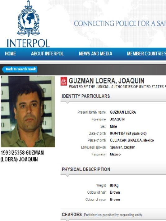 Interpol ha publicado a petición de Estados Unidos una "nota roja" de busca y captura del capo mexicano del narcotráfico Joaquín "El Chapo" Guzmán, que se fugó el pasado sábado del penal Altiplano I en el estado de México.