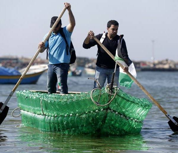 Cinco jóvenes desempleados de Gaza se las han ingeniado para construir un pequeño bote hecho con botellas vacías de plástico, proyecto con el que pretenden poner de relieve las duras condiciones que viven los gazanos por el bloqueo israelí.