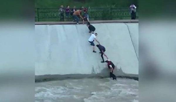 Este suceso ocurrió en el Río Sairan, ubicado en Kazajistán. El pequeño perro negro estaba a la mitad del río. Al ver esa escena un chico bajó a la corriente para rescatarlo y evitar que el animal sea arrastrado por la fuerza de las aguas.