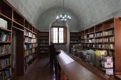 Todos estos libros ocupan ya estanterías de la casona que tiene un área de 1.450 metros cuadrados y que perteneció a familias notables de Arequipa, como la del expresidente Francisco García Calderón Landa, y en la que posteriormente funcionó el Colegio Sagrado Corazón de Jesús.