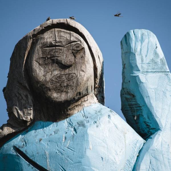 La estatua de tamaño natural en las afueras de Sevnica fue inaugurada el viernes y es obra del artista conceptual estadounidense de 39 años Brad Downey, quien asegura que es el primer monumento en el mundo dedicado a la esposa del presidente estadounidense Donald Trump.