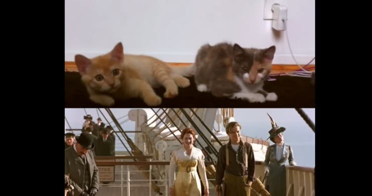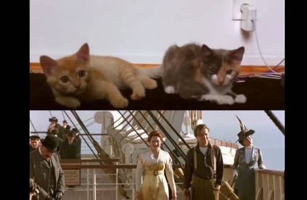 Dos adorables felinos interpretan las mejores escenas de Jack (Leonardo DiCaprio) y Rose (Kate Winslet), protagonistas, ene la conocida película "Titanic".