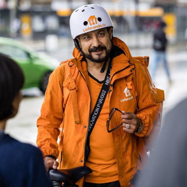 En Afganistán era ministro del gobierno. Ahora, en Alemania, Sayed Sadaat se gana la vida en bicicleta repartiendo comida a domicilio.