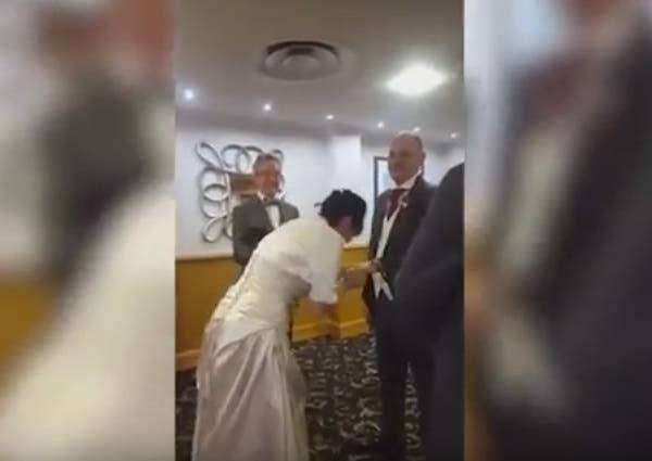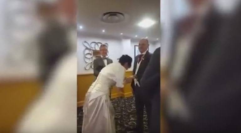 Todo empezó cuando el encargado de la boda pidió a Cheeseman dedicarle una famosa frase matrimonial a su novia, Stephanie, para que entonces ella respondiera con un “sí”. Sin embargo, el hombre cometió un error de pronunciación lo que desató la risa de la mujer.