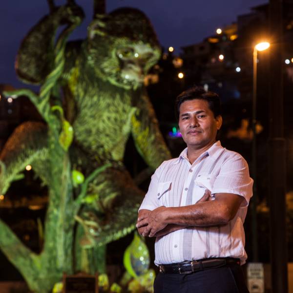 Juan Sánchez Andrade, de 52 años, es artista plástico, oriundo de Cotacachi (Imbabura) y autor de reconocidas esculturas, como la iguana de Urdesa (Aventura Plaza, en las avenidas Las Monjas y Carlos Julio Arosemena), la del papagayo de la Alborada (entre el City Mall y la Rotonda), la del Mono Machín al pie de los túneles de los cerros Santa Ana y Del Carmen, la Piña en la entrada de Milagro, el Maíz en Manabí, las Garzas y Gallos de Pelea en Samborondón, entre otras.