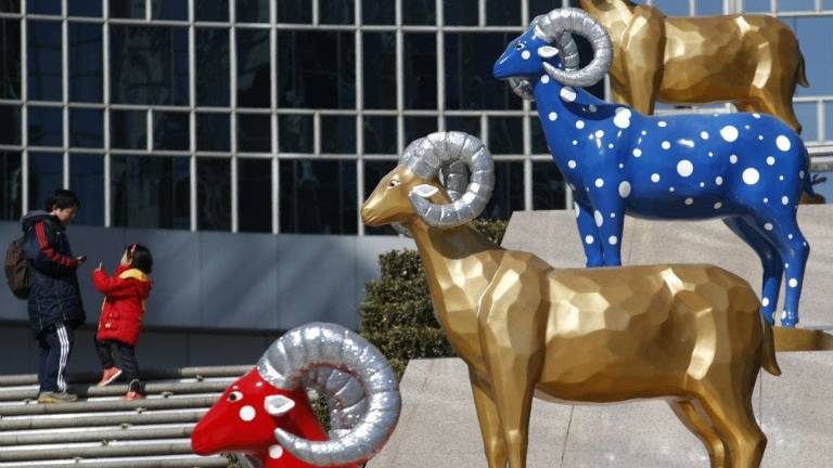 Las cabras -o, más bien, las figuras o dibujos que las representan- están ahora por todas partes: en las puertas de las casas, decorando las oficinas y, por supuesto, en los centros comerciales y los restaurantes. Son un recordatorio de que a partir de este jueves será ése el signo zodiacal que rija el destino de los chinos durante el año 4712 de su calendario.
