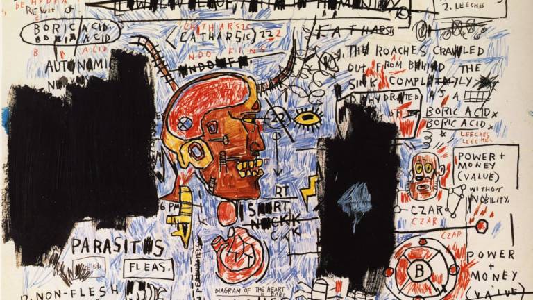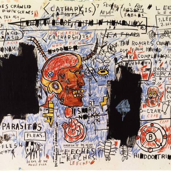 Basquiat, nacido en Brooklyn de padres caribeños, ya utilizaba la palabra en algunos de sus grafiti o incluso en sus lienzos, pero sobre el papel, a veces con un bolígrafo, a veces con una pintura, jugaba a explorar los límites del lenguaje y el poder expresivo de la caligrafía.
