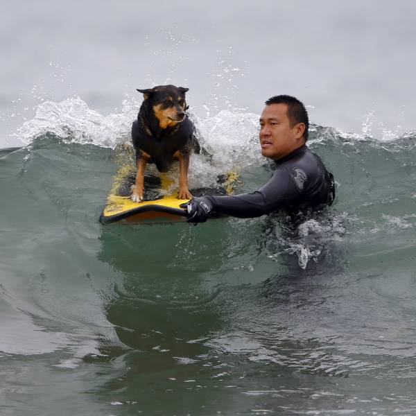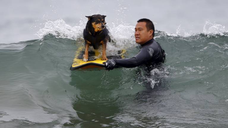Muchos de ellos llegaron a la zona de Imperial Beach vestidos como todos unas estrellas del surf con tablas y trajes adaptados a su tamaño. Incluso cada animal compitió con un chaleco salvavidas por su seguridad.