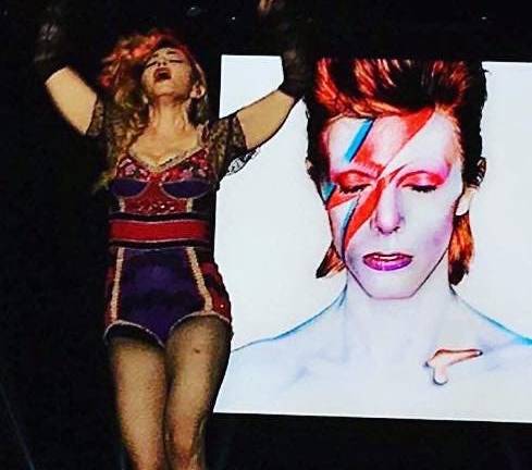 <div><span>Mostrando una galería de fotos de Bowie en una pantalla tras ella, Madonna cantó un